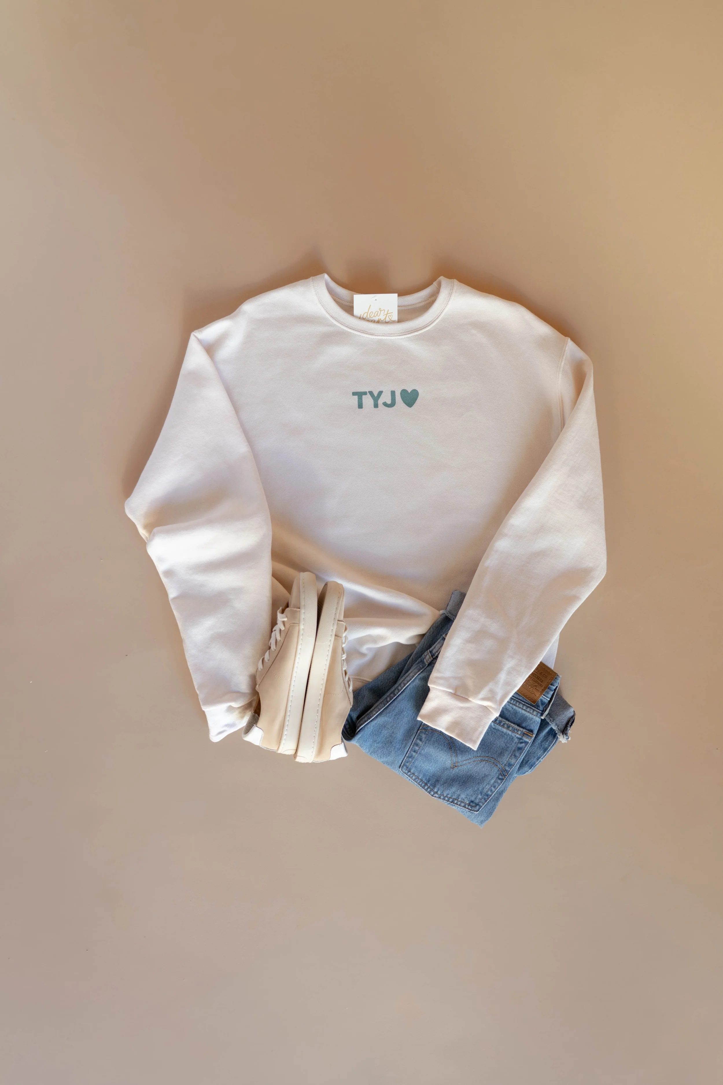 Soft Cream/Ivory Pullover with Muted Teal Ink